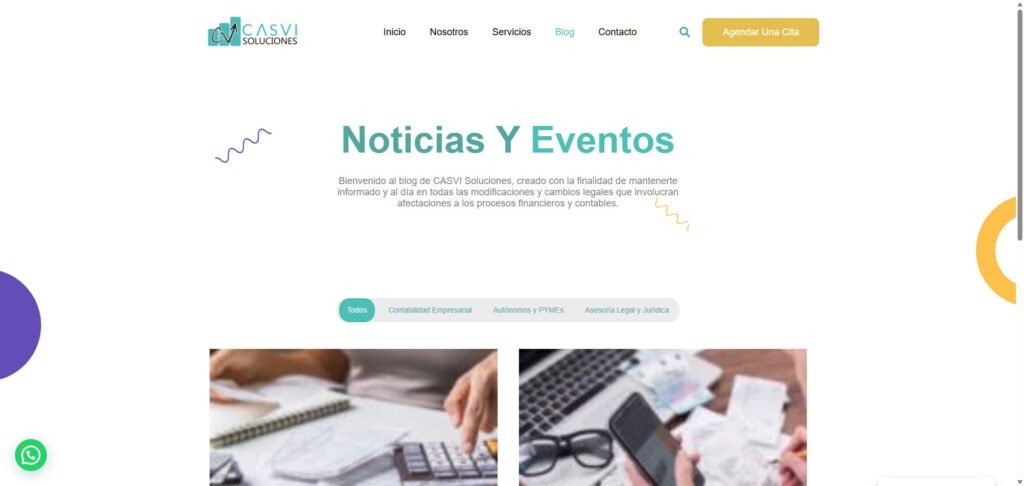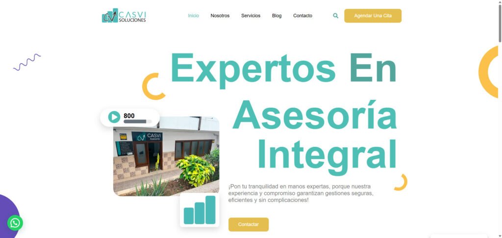 Casvi Soluciones, empresa dedicada a la asesoría integral, necesitaba una página web que le permitiera diferenciarse de su competencia en un mercado altamente saturado. Su objetivo principal era contar con una plataforma profesional que proyectara confianza, reforzara su imagen de marca, generara una mayor cantidad de leads y mejorara su visibilidad en buscadores como Google.