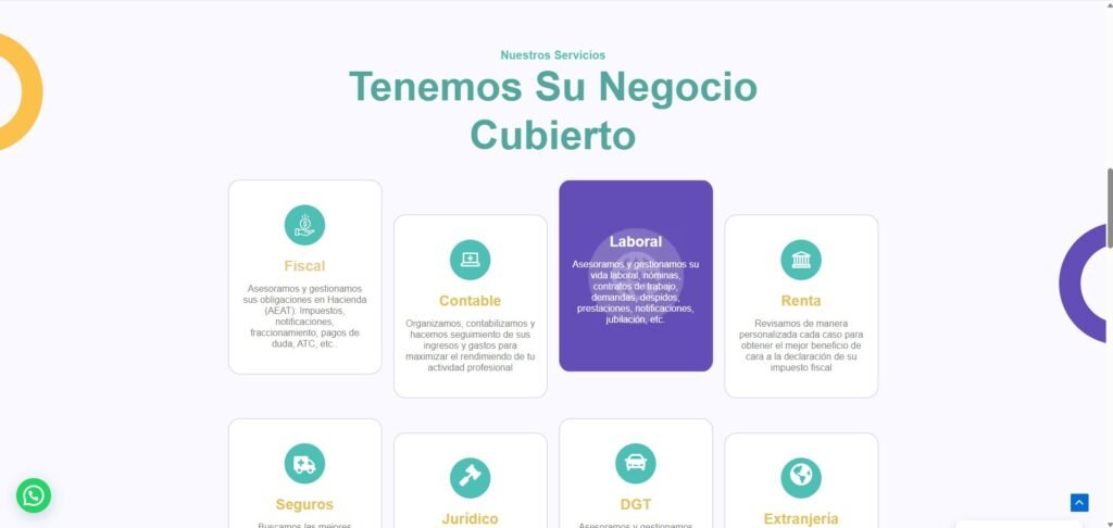 Además, se trabajó una base sólida de SEO on-page, optimizando la estructura del sitio, las URL, títulos, meta descripciones, tiempos de carga y contenido enfocado a palabras clave relevantes dentro del sector de la asesoría. Esto permitió mejorar su posicionamiento progresivo en los resultados de búsqueda.